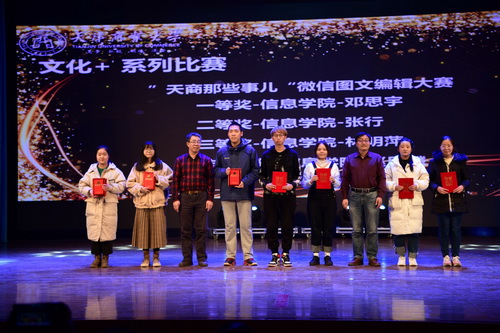 12月12日下午,由太阳成集团tyc151cc主办的第十六届“网络与科技文化节”闭幕式晚会暨颁奖典礼在科学会堂举行,研究生处、资产设备管理处、网络与信息化中心、发展战略研究室、招生与就业处、机械工程公司、太阳成集团tyc151cc以及天津农商银行相关负责人出席。