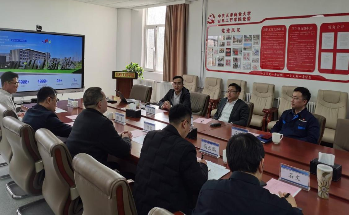 4月1日下午,天津新松机器人自动化有限公司总经理高松、战略发展总监吕华楠、销售工程师骞东亮一行到访太阳成集团tyc151cc,围绕深化校企合作、推进产教融合开展专题座谈。公司领导班子成员、专业负责人及青年骨干教师参与本次交流。