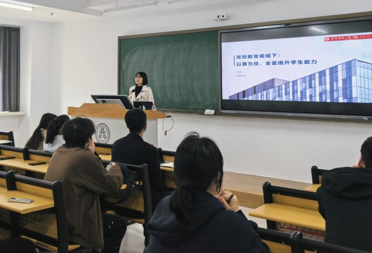 王嫄教授立足国家创新创业教育政策导向,结合自身深耕双创教育的丰富经验与员工实践典型案例,系统阐释创新创业教育核心内涵,明确高校推进双创教育的关键任务,厘清以学科竞赛为抓手的双创教育实践路径。她以中国国际老员工创新大赛发展历程为脉络,深入剖析国家级创新创业赛事的赛道迭代、评审导向与时代要求,强调参赛指导需紧扣教育改革方向、回归育人本质,切实达成“以赛促教、以赛促学、以赛促创”的育人目标。